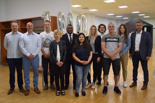 Jeden Monat starten Menschen in ihren neuen Job bei VEGA. Die Gruppe, die am 1. Juni 2023 begrüßt wurde, war dennoch eine ganz besondere: Alle zehn Neuen stehen stellvertretend für den 1000. Mitarbeiter am Standort Schiltach.