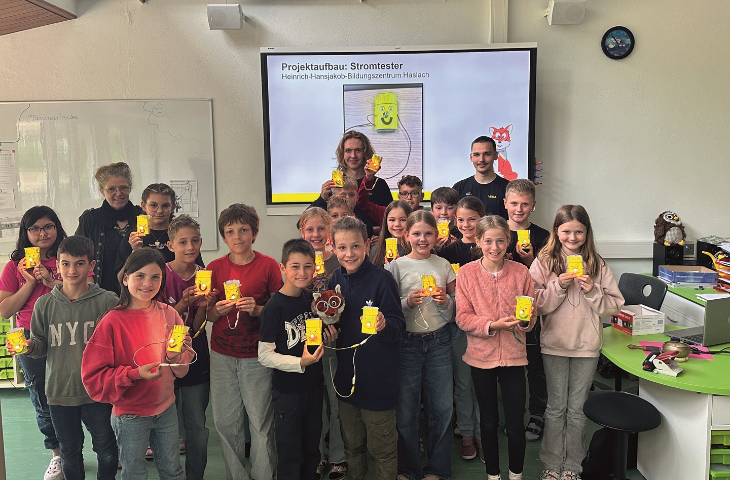 „Wow, das leuchtet ja wirklich!“ Mit großen Augen beobachten die Viertklässler, wie das Glühlämpchen im selbstgebauten Stromkreis aufblinkt. Kabel, Klemmen, Batterien liegen auf den Tischen, Hände arbeiten konzentriert. Es ist kein gewöhnlicher Schultag: Die Firma VEGA ist zu Besuch und bringt Technik zum Anfassen ins Bildungszentrum Haslach.