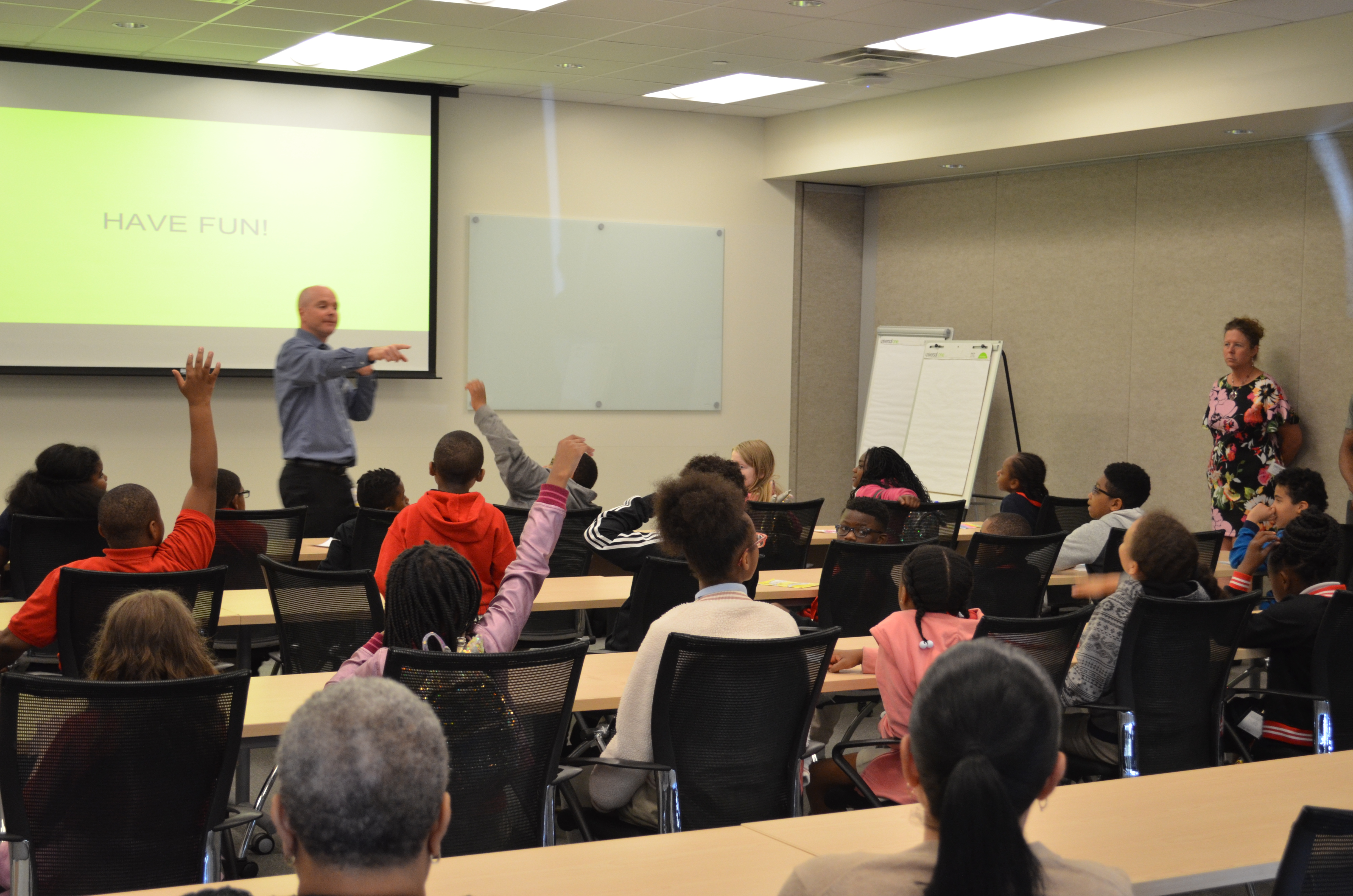 Foltz-Buyniski and other VEGA employees welcomed the fourth graders as they arrived on VEGA Americas’ campus on top of the hill on Rosslyn Drive.
