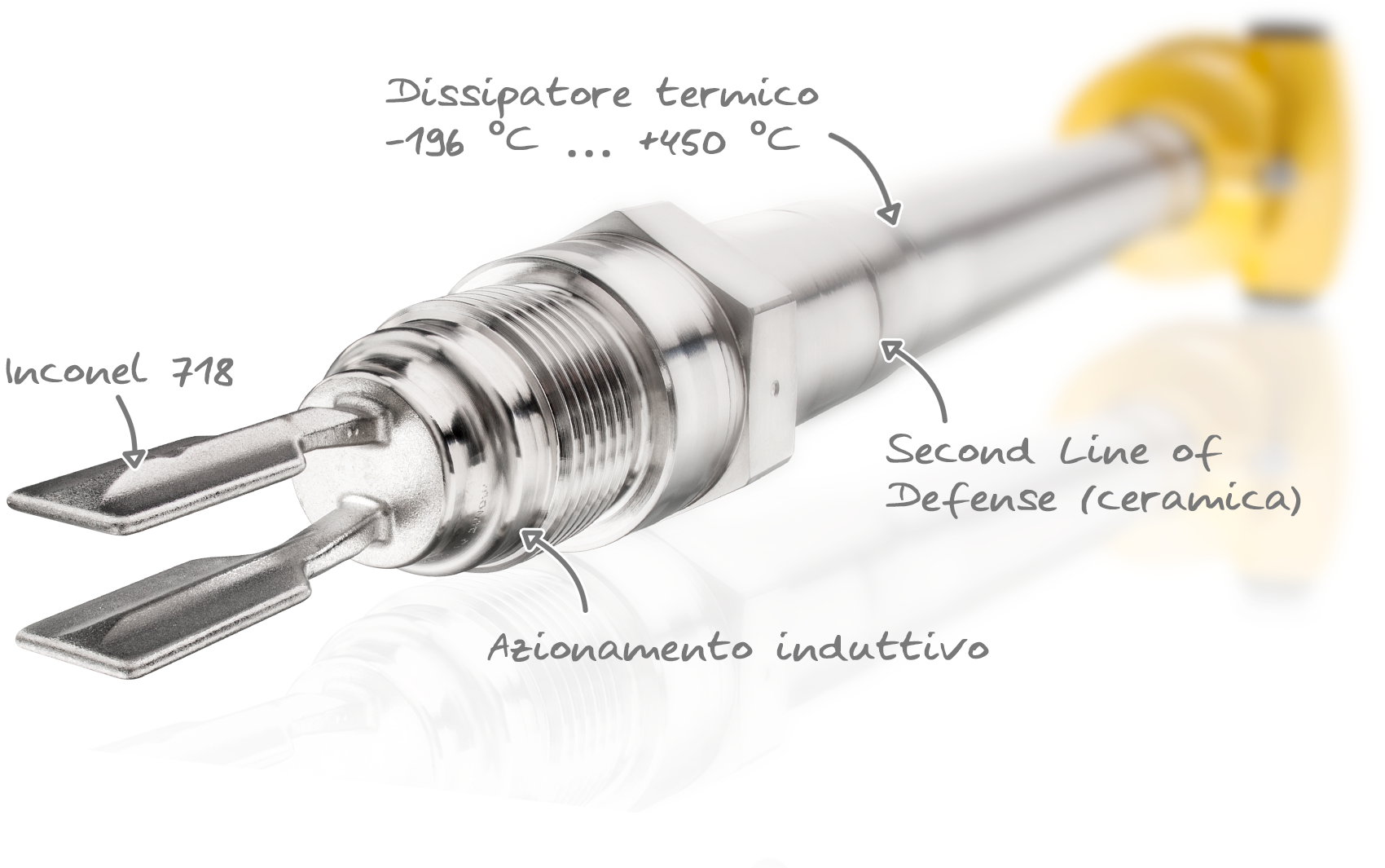 Interruttore di livello a vibrazione per liquidi a temperature e pressioni di processo estreme
