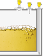 Medição de nível de enchimento e detecção de nível limite no silo de cacos de vidro